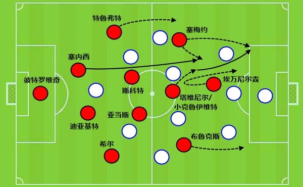 塞梅尼奥比马尔穆什强的地方是他的力量更好,防守投入度更高。作为边锋能深度退防又能在攻防转换时突然变成箭头,直接冲刺对手的防线纵深。