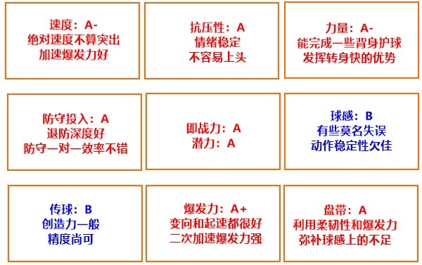b.     爆发力是优势&上下跑动能力强