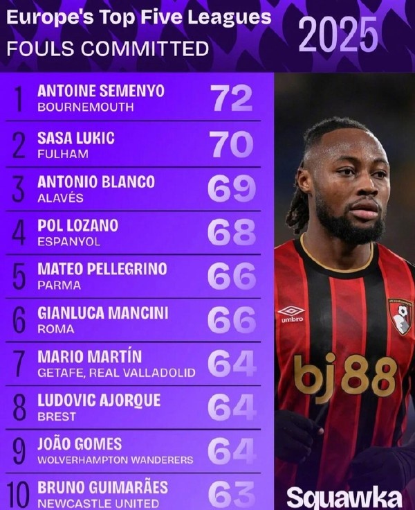 毕竟塞梅尼奥是欧洲五大联赛犯规最多的球员,之前伯恩茅斯与切尔西的比赛中,也是塞梅尼奥积极回防时对埃斯特旺犯规送出了点球。